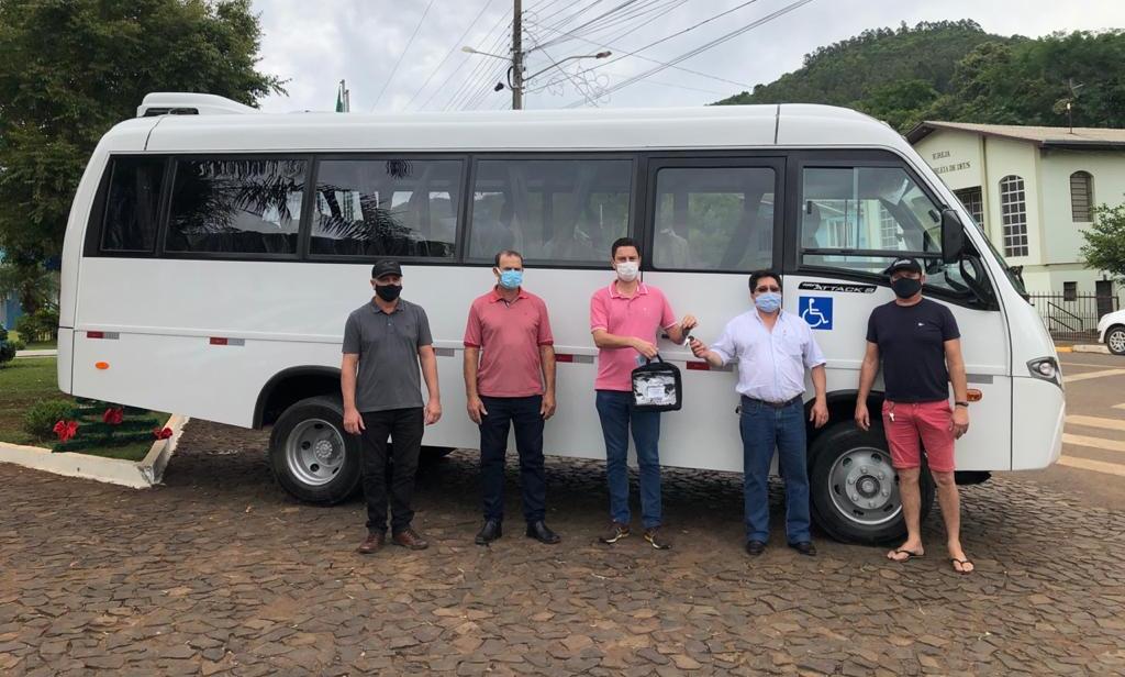 A Prefeitura de Barra do Rio Azul recebeu na sexta-feira, 04 de dezembro, um micro-ônibus novo, com banco rodoviário, ar condicionado, 23 lugares, para atender a Assistência Social do município. A entrega simbólica da chave do veículo ocorreu com a presença do prefeito Marcelo Arruda, vice-prefeito, Maximino Basso e os motoristas do município Gerson Prior e Marcelo Szlachtta.
