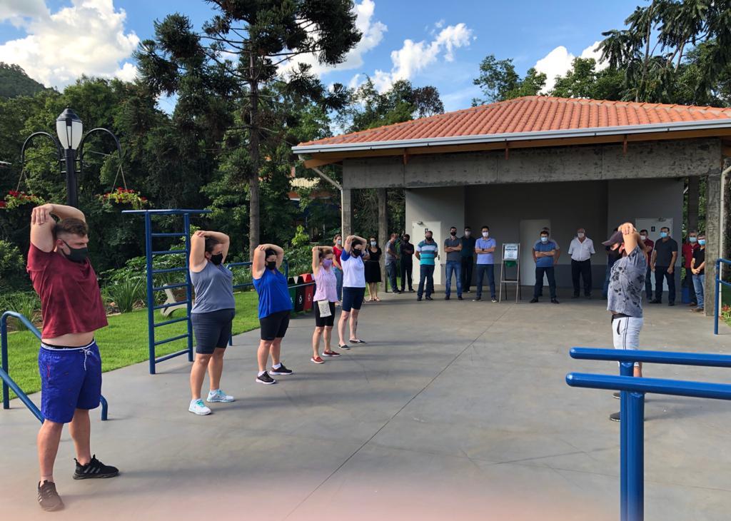 Durante a solenidade o professor explicou alguns exercícios físicos que podem ser realizados na academia.