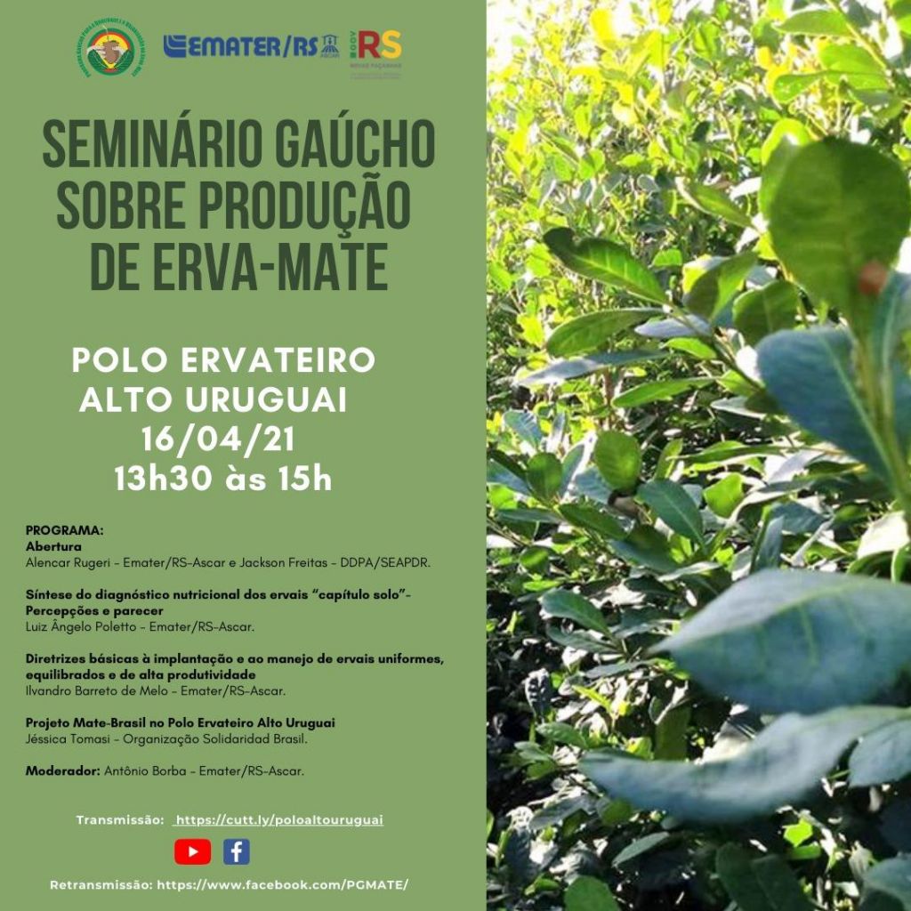 De forma online em virtude da pandemia da Covid-19, o Seminário teve como ênfase o projeto Diagnóstico nutricional dos ervais gaúchos, iniciado em 2020. O objetivo é aumentar e qualificar a produtividade da erva-mate na região e no Estado.