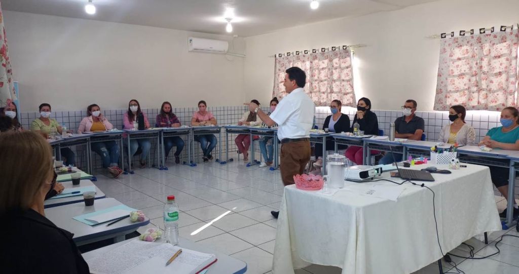 No dia 10 os professores participaram de um dia de formação proporcionado pela universidade URI Erechim. O evento contou com a presença do conferencista Jorge Trevisol, que tem dedicado boa parte de sua vida profissional na formação de professores e dirigentes escolares, inclusive através da música. “Passamos e ainda estamos vivendo a pandemia e precisamos entender que devemos, antes de tudo, ter um coração mais puro, pois estamos todos no mesmo patamar”, disse o palestrante.